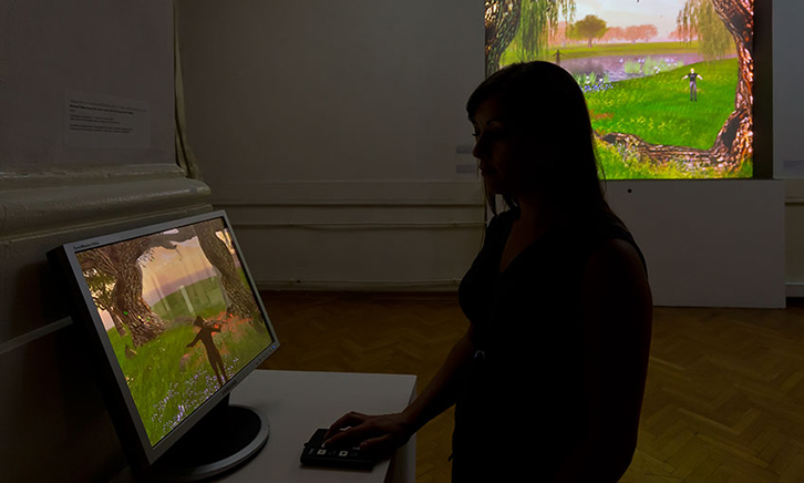 Michael’s artwork is called ‘Visions of our Communal Dreams’, ‘a virtual/physical art installation exploring issues of hybridity, embodiment and collective creativity in the Avatar Age’, created in collaboration with Drew Baker, Erik Fleming and David Steele (more info here), and although the coding, 3D modelling etc involved in this opus is something I can be of little help with, I have been helping out here and there with various activities this week other than passing tools to people up ladders! The exhibition is being accompanied by three days of workshops run by Drew and Michael where local students are being given the opportunity and training to create their own avatars and 3D objects to add to the virtual space, so I am documenting these sessions so that Kibla has some video footage and photographs of them for their archives.